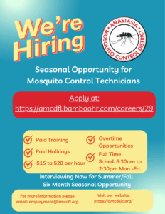 Anastasia Mosquito Control District is hiring seasonal Mosquito Control Technician